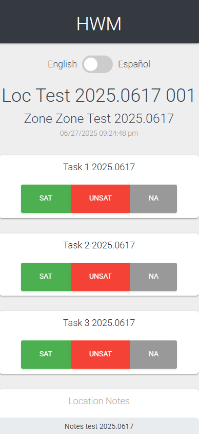 3. Complete the Tasks listed, marking them as “SAT”, “UNSAT”, or “NA” if it is not applicable