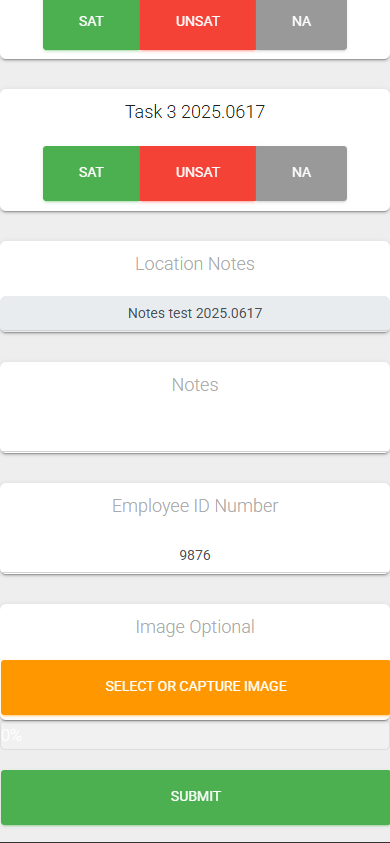 2. Media upload is after the task list, “Select or capture image” (supports image and video)